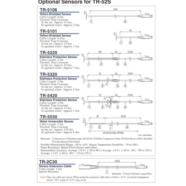 Thermo Rekorder mit IR Schnittstelle und Alarmanzeige. Messbereich -60 bis 155 °C. Mit externem Sensor TR-5106. Schutzgrad IP 64. Batterie hält bis 1 Jahr. Optionale Sensoren wasserdichte Tauchsensoren oder Einstech- Edelstahlspitze